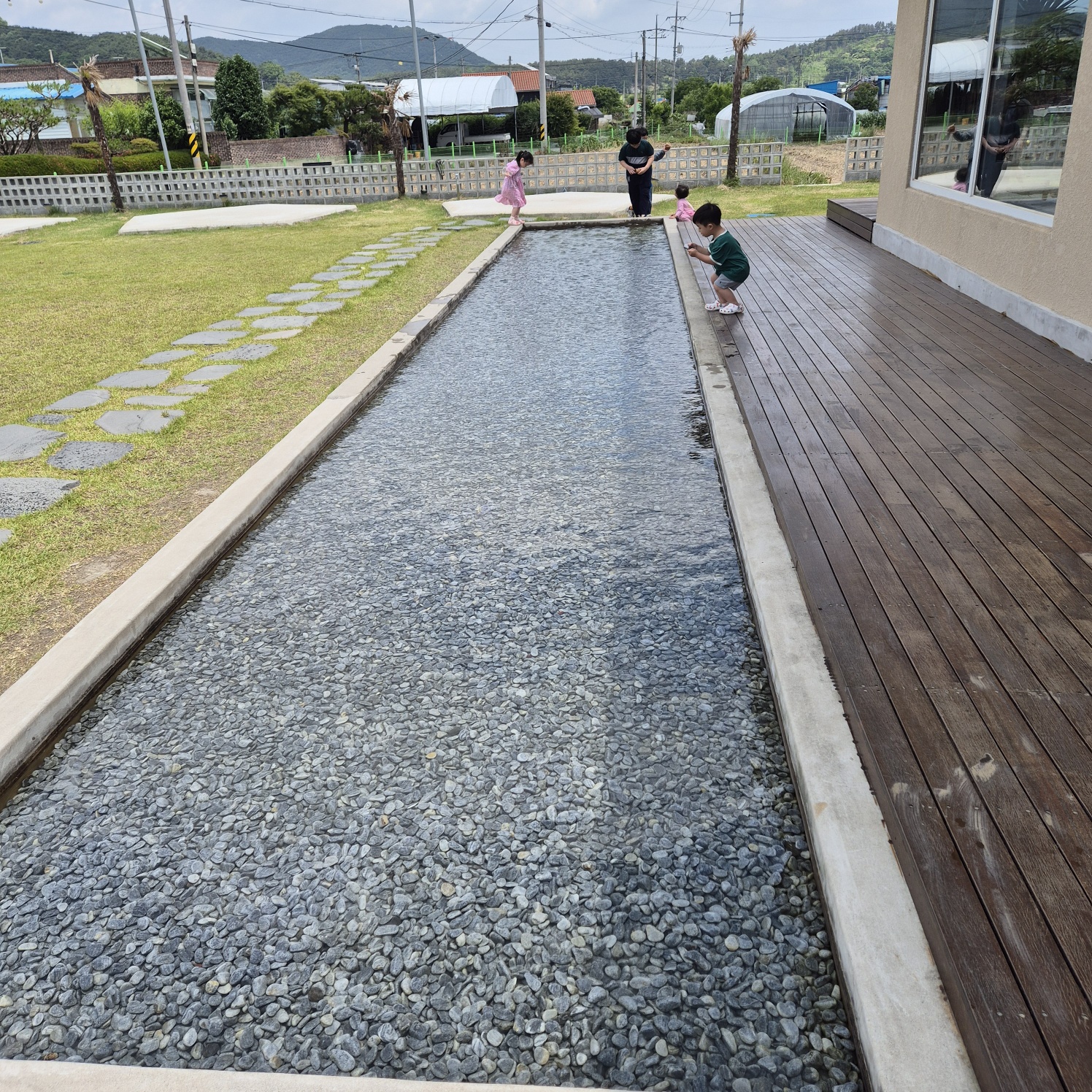 카페 잇다의 인테리어와 구조가 시원시원한대요. 특히 이 연못(?)이 물을 좋아하는 아이들에게 인기가 많았어요.